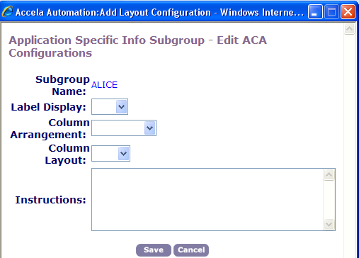 - Click ACA Configuration next to the group or subgroup requiring layout