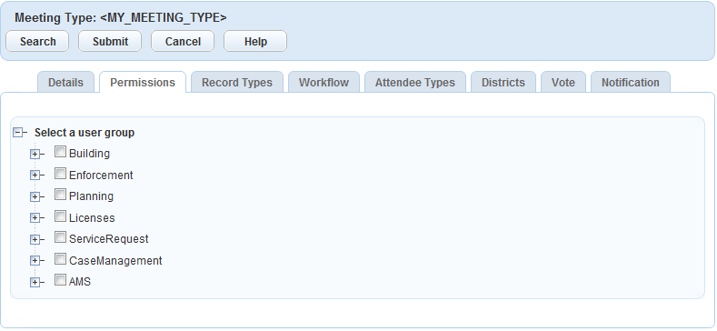 By default, Civic Platform sets the permission to Full for the newly assigned group. You might need to modify this permission depending on your business requirements.