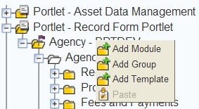 Right-click the Module or Group folders where you want to copy the menu template, and then click Paste.