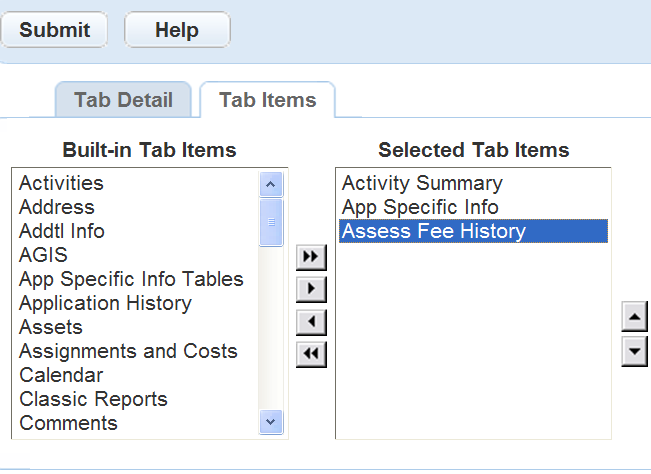 Civic Platform moves the Tab Item to the Selected Tab Items box.