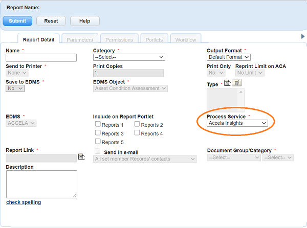 4. Select Accela Insights from the Process Service list.