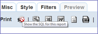 SQL Displays the SQL logic that defines your report.