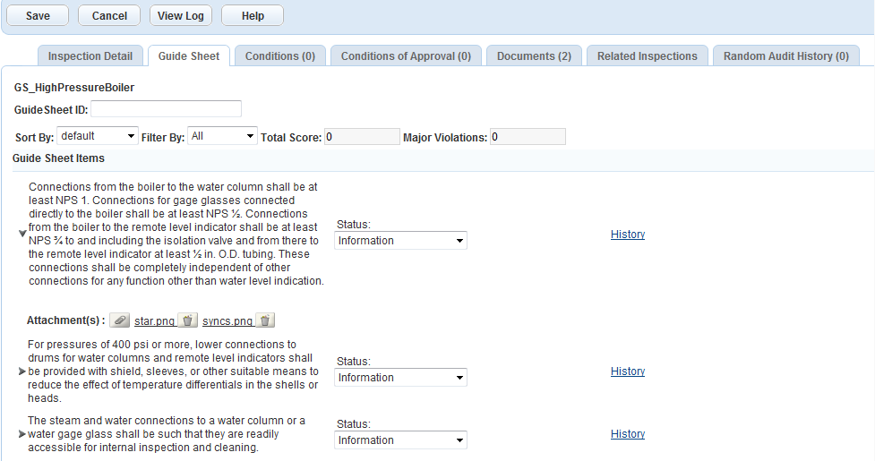 Note:(1) If you have no supervisory privileges, your agency administrator may only allow you to modify the checklist item statuses, and forbid you from editing inspection result, inspection grade, checklist total score, and checklist major violation.