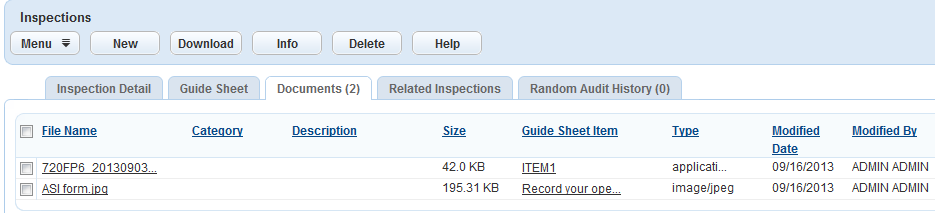 Accessing a Checklist Item from the Inspection Documents Portlet