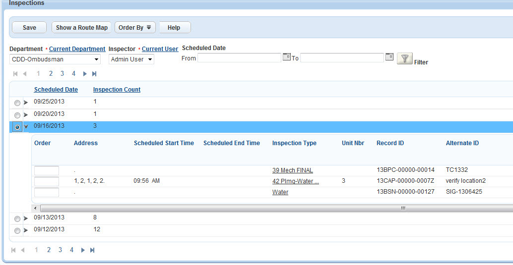 Optimize your inspection route. You can use GIS, or you can use a third party optimizer, provided your agency has configured the integration for it.