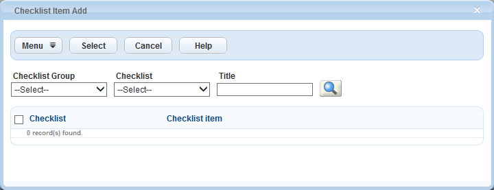 If known, choose the Checklist Group and Checklist that contains the checklist item from the drop-down lists, or enter the checklist item key word and click the search icon.