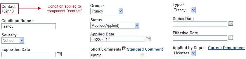 Figure: Condition Notice on a Record